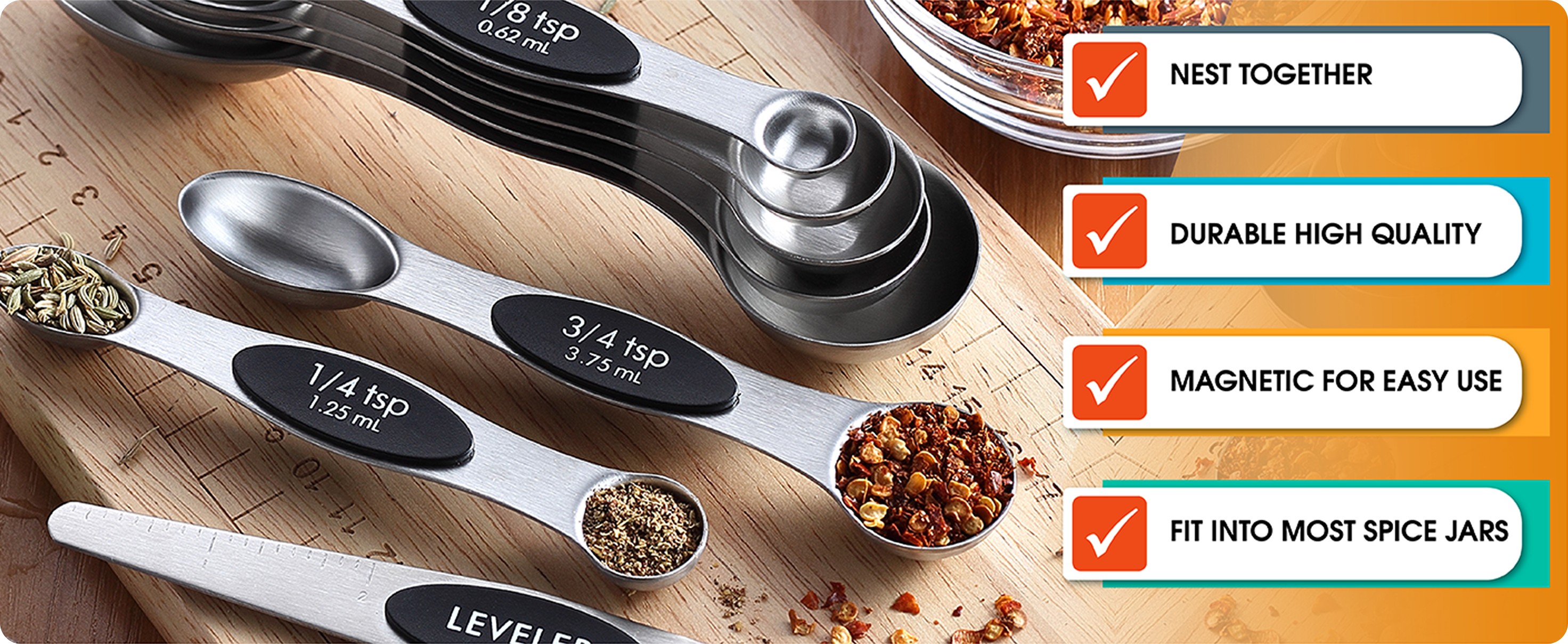 The spoons also lay flat on the counter without spilling their contents. Save precious time too since they are dishwasher safe.