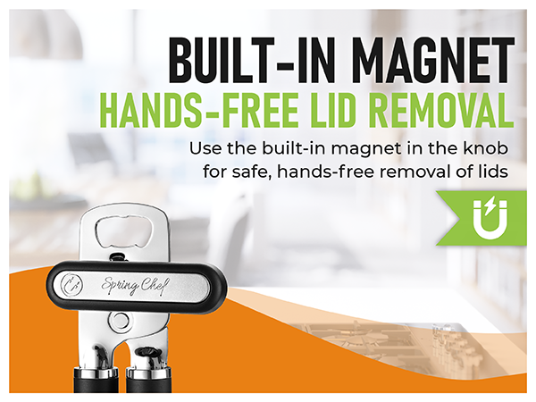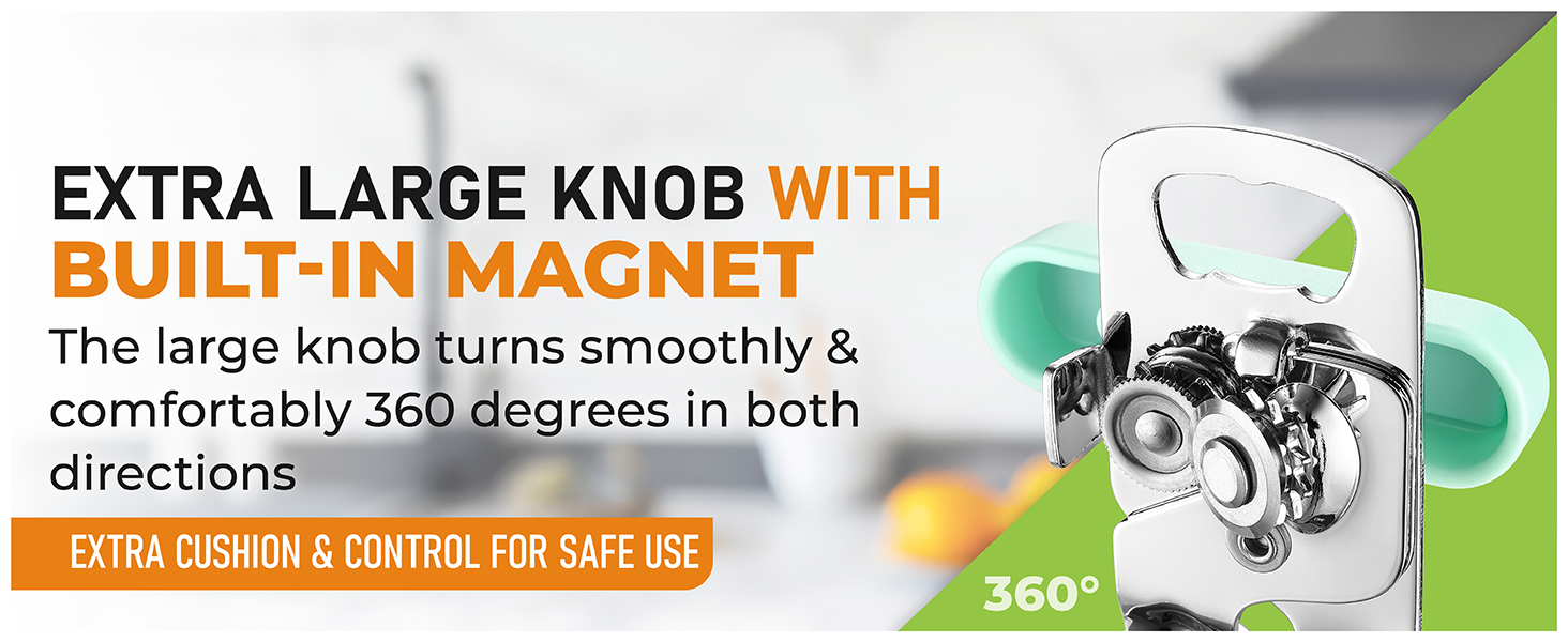 Extra Large Knob with Built-in Magnet - Use the built-in magnet in the knob for safe, hands-free removal of lids. The large knob turns smoothly and comfortably 360 degrees in both directions to avoid jagged edges.
