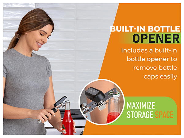 3-in-1 Tool, Simple to Use - Can opener, bottle opener and Magnetic lid removal all in one handy kitchen tool. To use: Clamp handles onto can, turn knob until entire can has been cut, open handles and use knob to remove lid. Hand wash and dry completely. BPA Free.