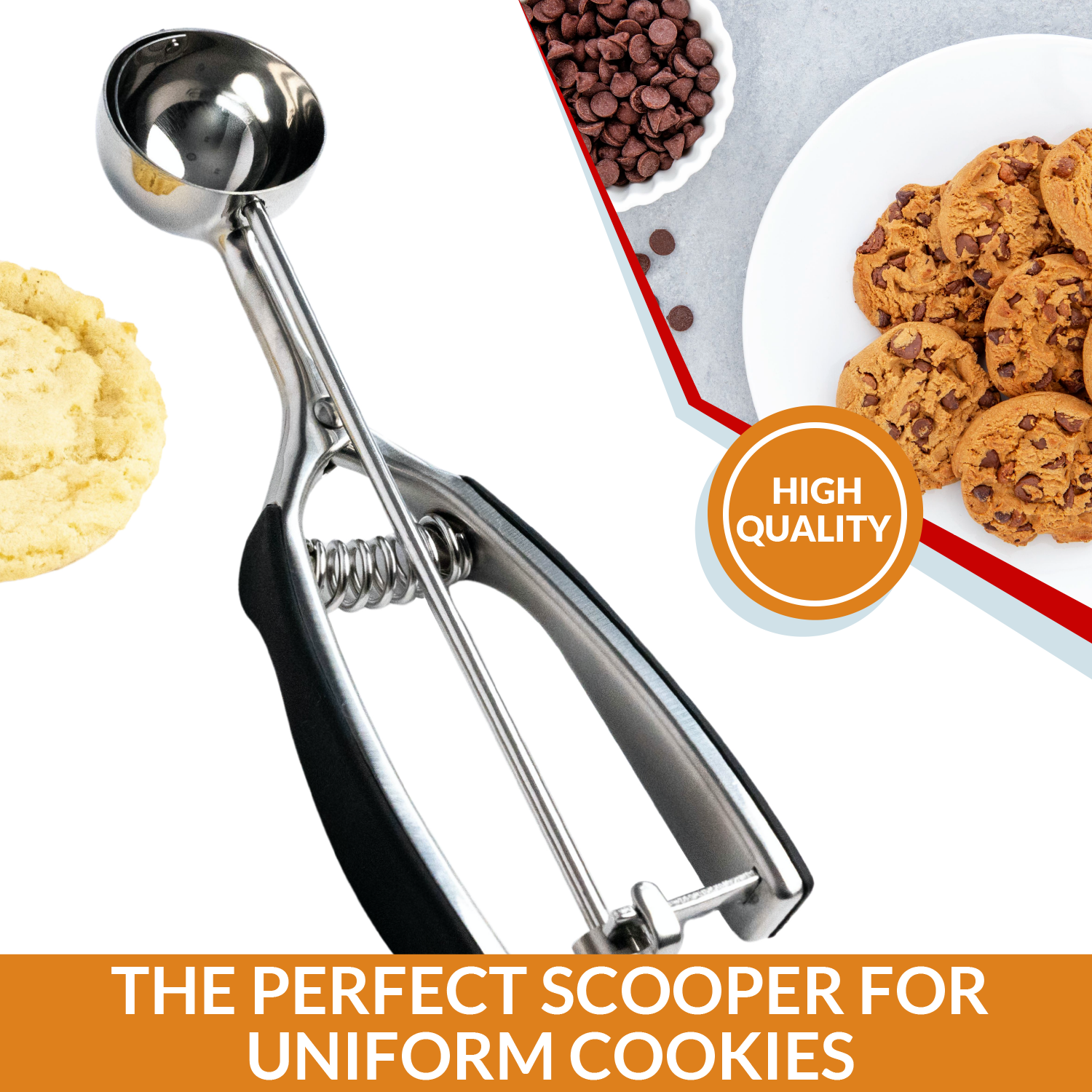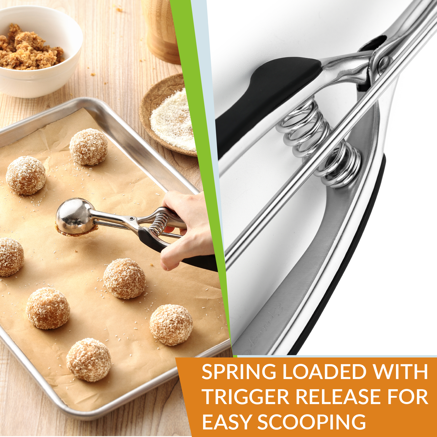 Spring Chef Cookie Scoop, Premium 18/8 Stainless Steel Disher with Soft Grip, Spring Loaded with Trigger Release