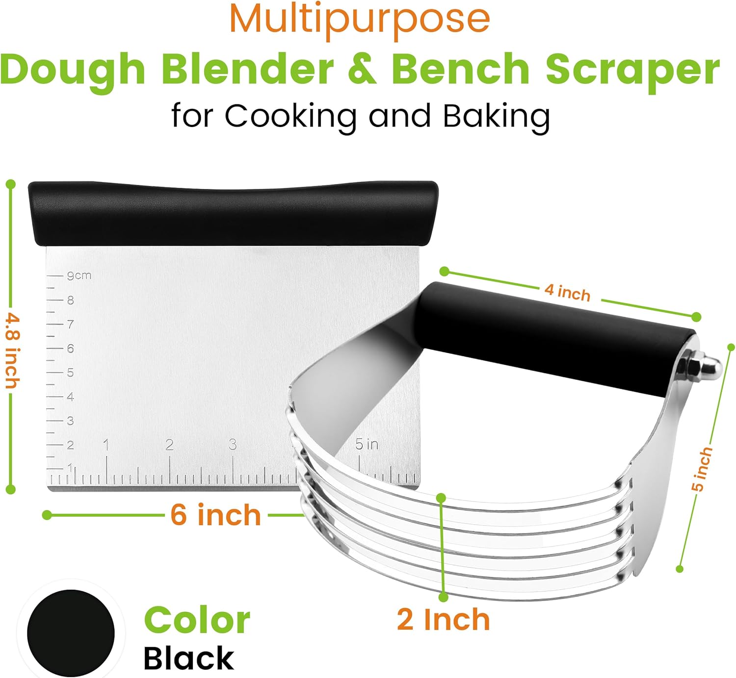 - Dynamic Duo - This set includes both a dough blender and bench scraper to achieve better baking results. The dough blender expertly combines ingredients while the bench scraper can scrape, measure, cut and even transfer dough. They are the perfect pair to work with dough with minimal handling so your dough doesn't get tough.