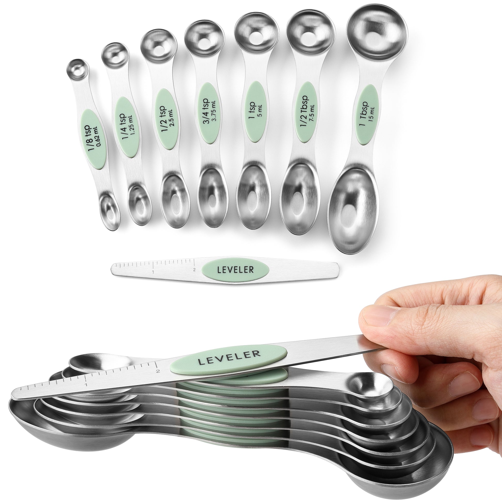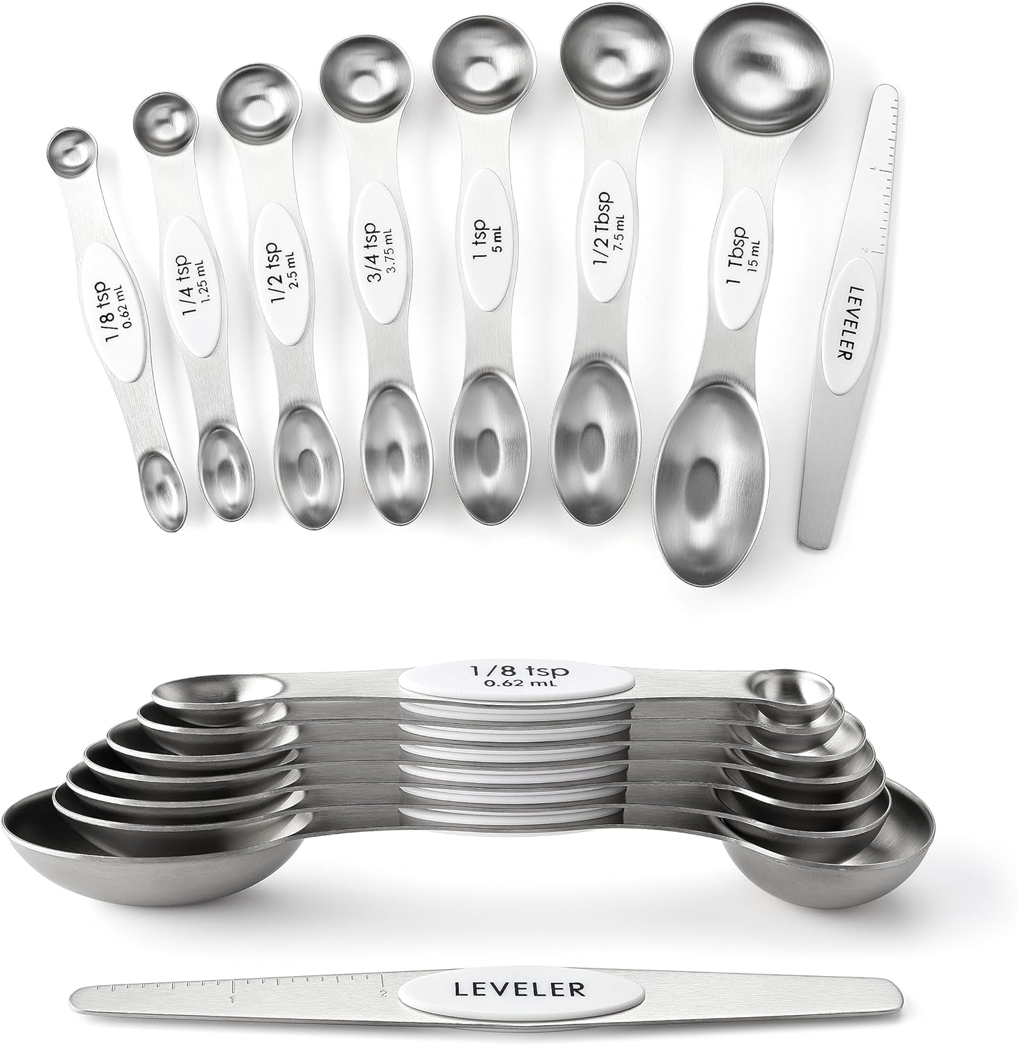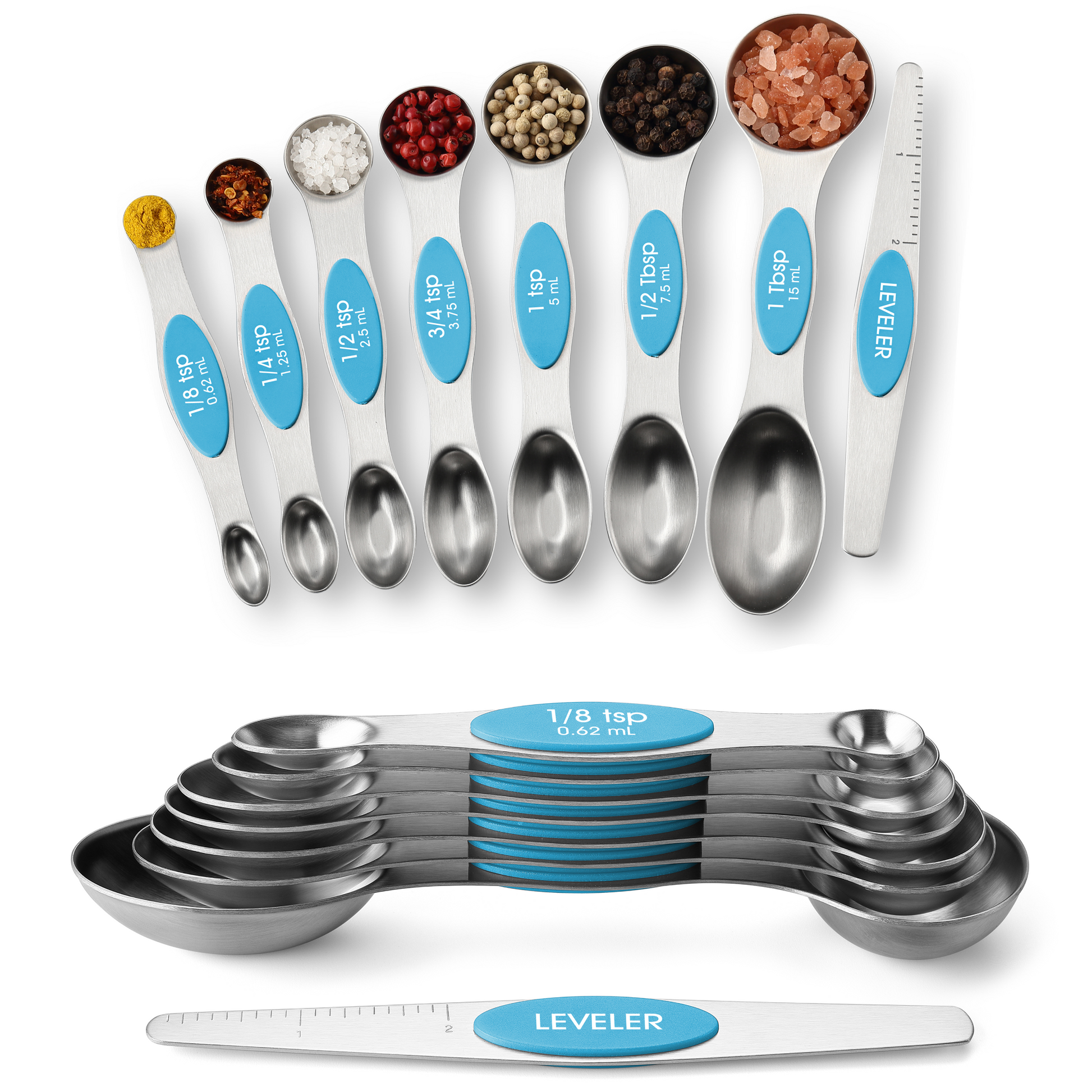 Spring Chef Magnetic Measuring Spoons Set, Dual Sided, Stainless Steel, Fits in Spice Jars, Set of 8, 2 Pack
