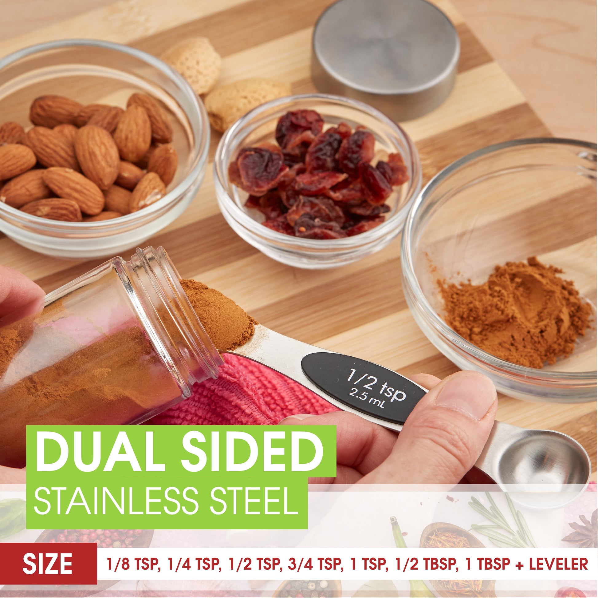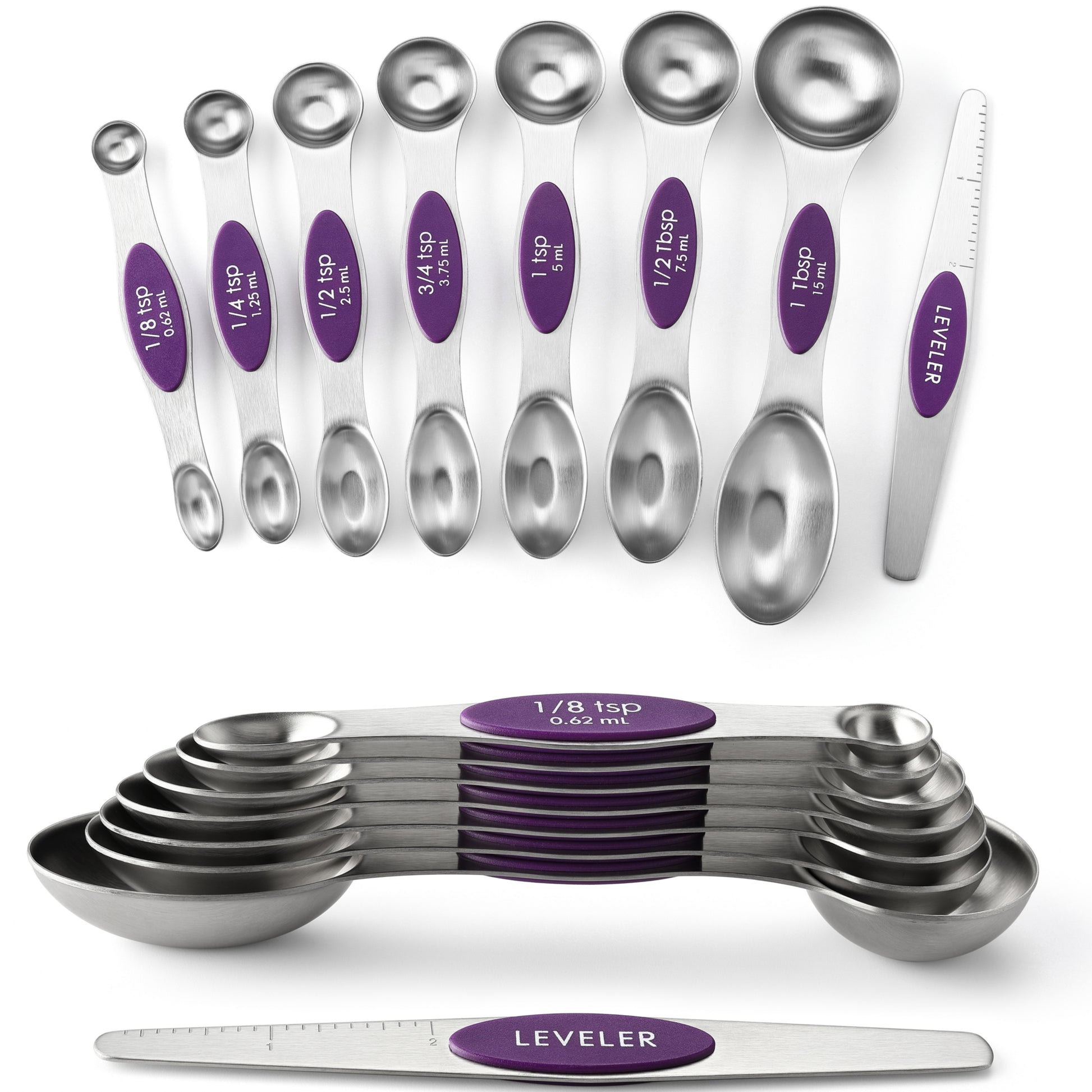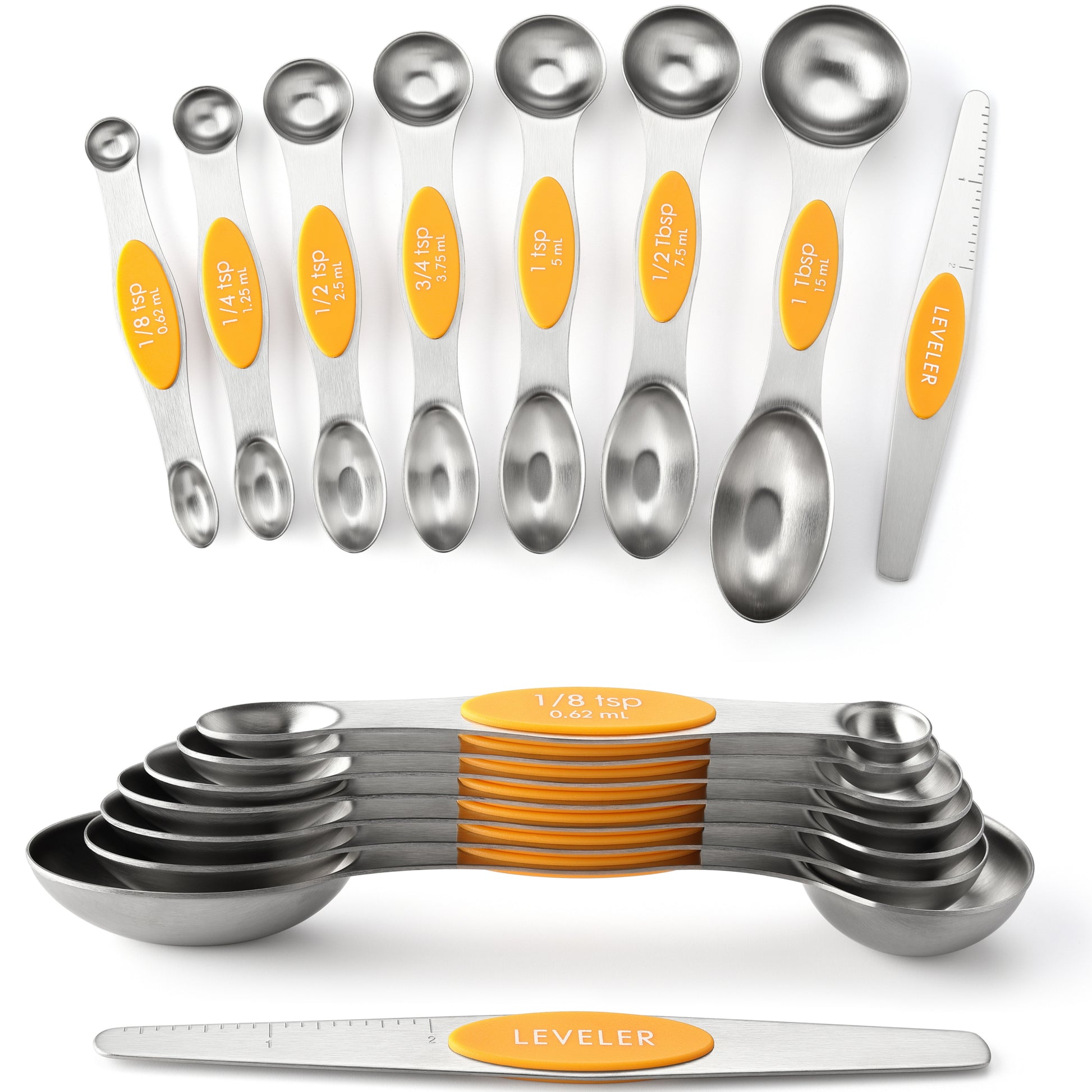 Spring Chef Magnetic Measuring Spoons Set, Dual Sided, Stainless Steel, Fits in Spice Jars, Set of 8, 2 Pack
