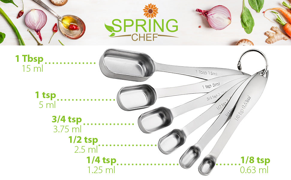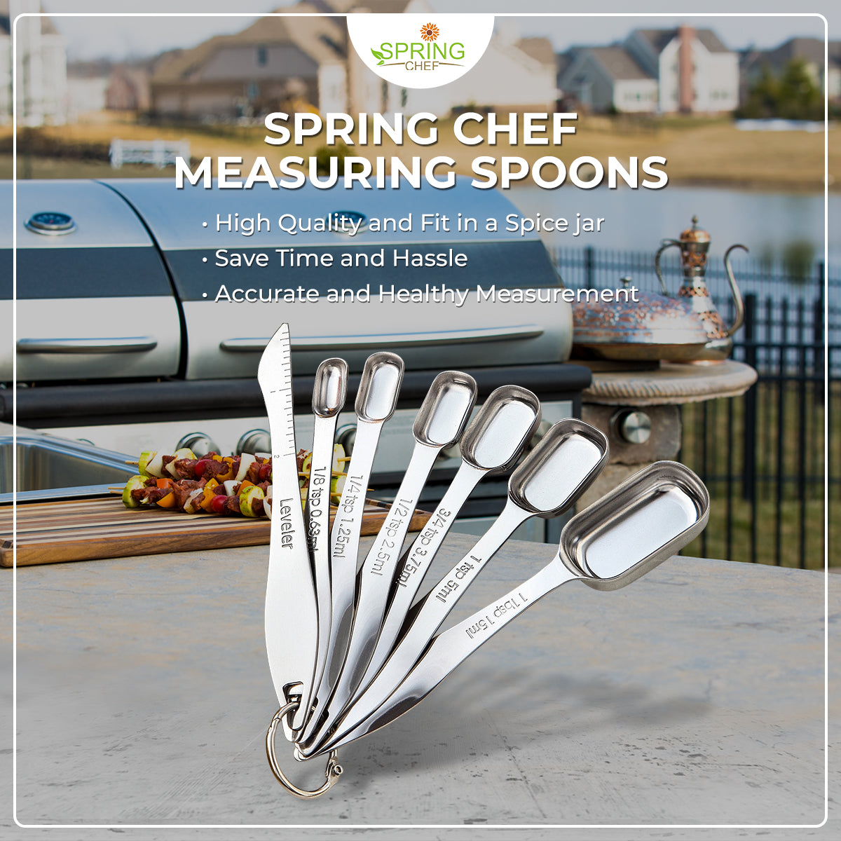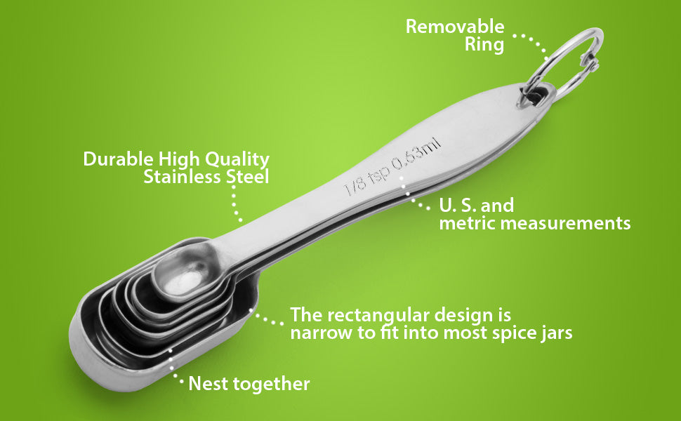 YOU DESERVE THE BEST - These spoons have engraved U.S. and metric measurement markings that are easy to read and won't fade or rub off like plastic. They nest together for compact storage and come with a convenient ring that opens and closes to let you use one spoon at a time and then keep them all together when you're done. You'll wonder how you ever lived without them.