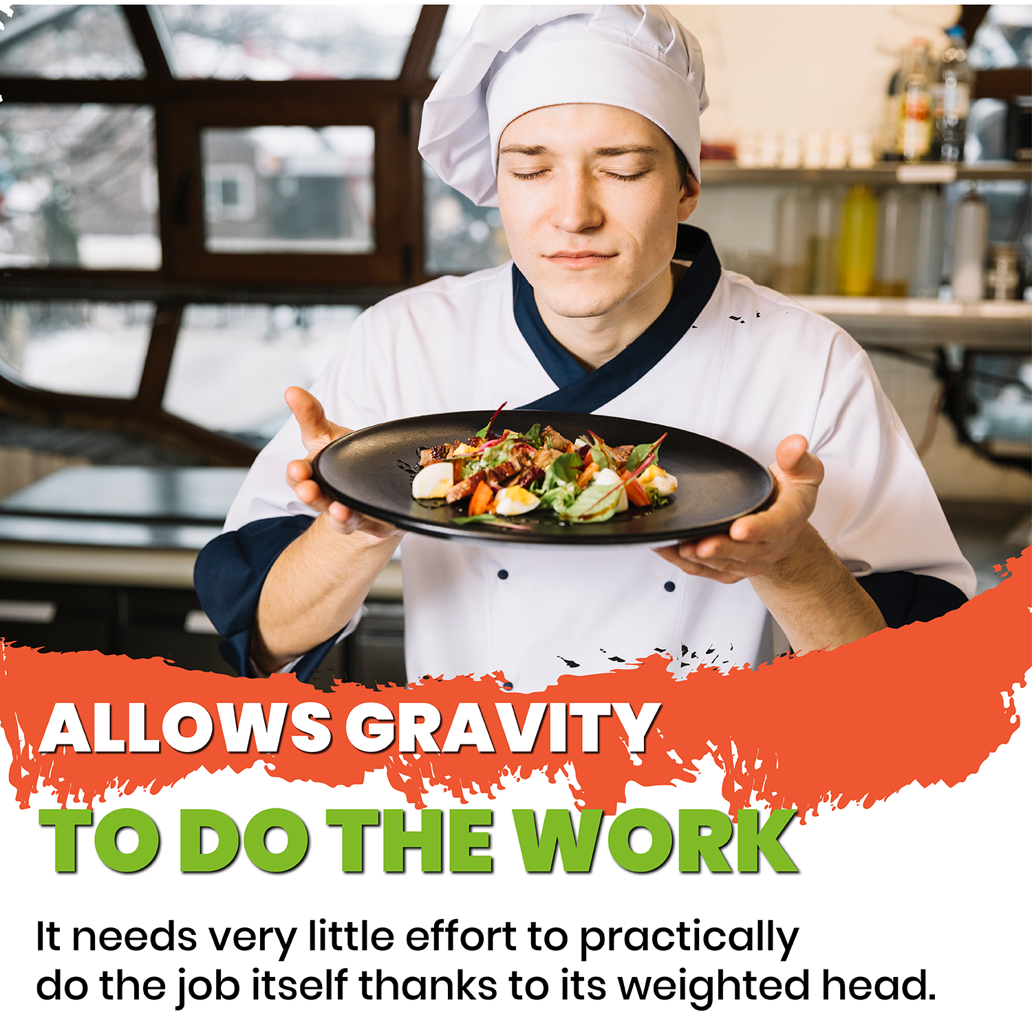 ALLOWS GRAVITY TO DO THE WORK - Heavy duty without requiring a lot of "elbow grease" or tiring your hand. The soft grip handle is great for those with arthritis. It needs very little effort to practically do the job itself thanks to its weighted head.
