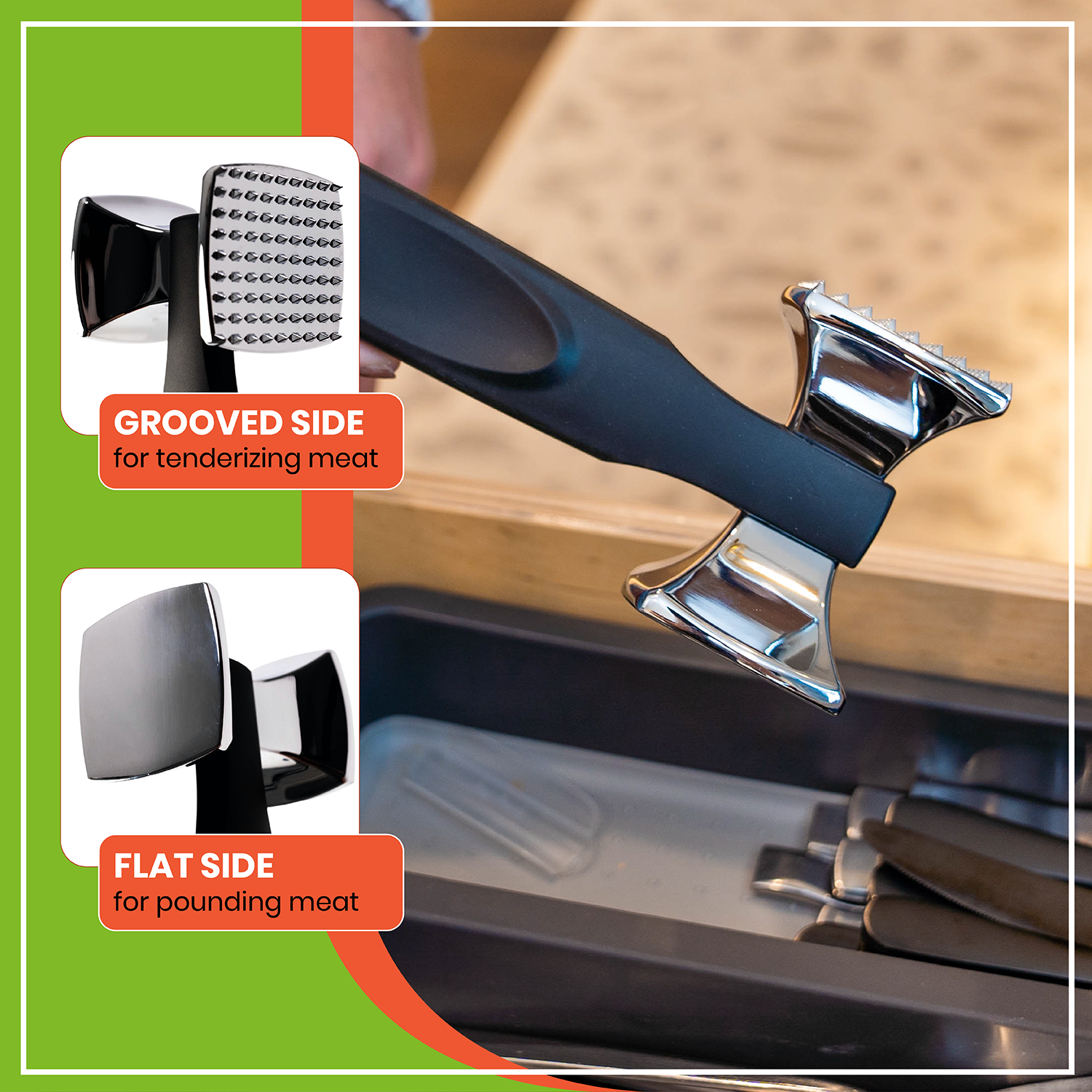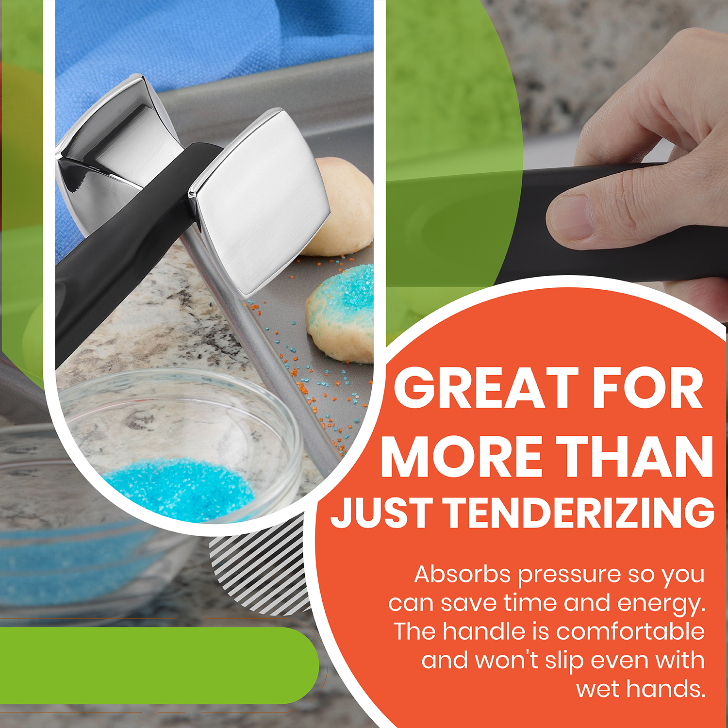 COOK UP TO 50% FASTER - Amazing hammer tool to reduce your cooking time and let you enjoy perfectly and evenly cooked chicken, steak & veal that is juicy, flavorful and so tender you can cut it with a butter knife.