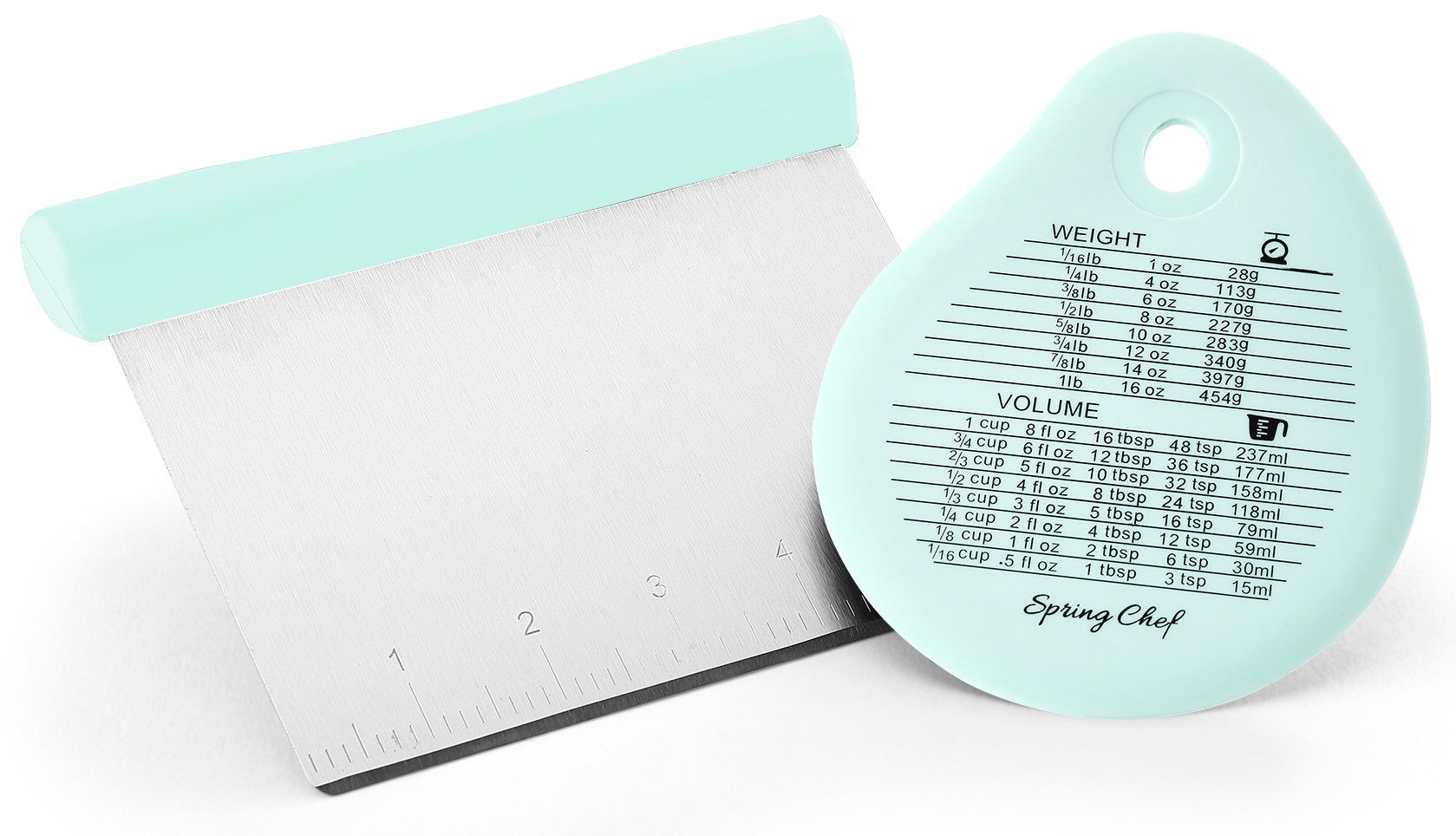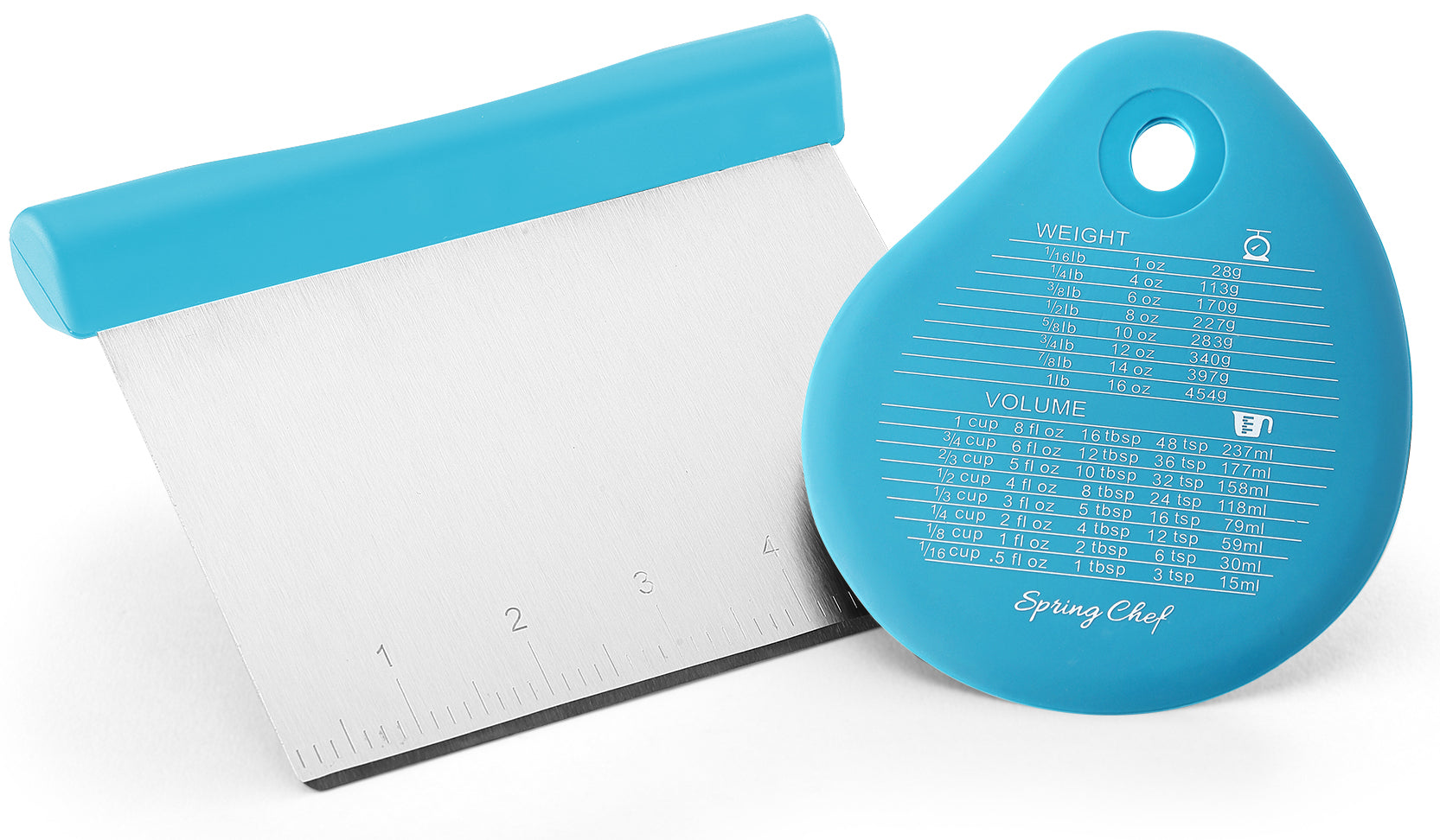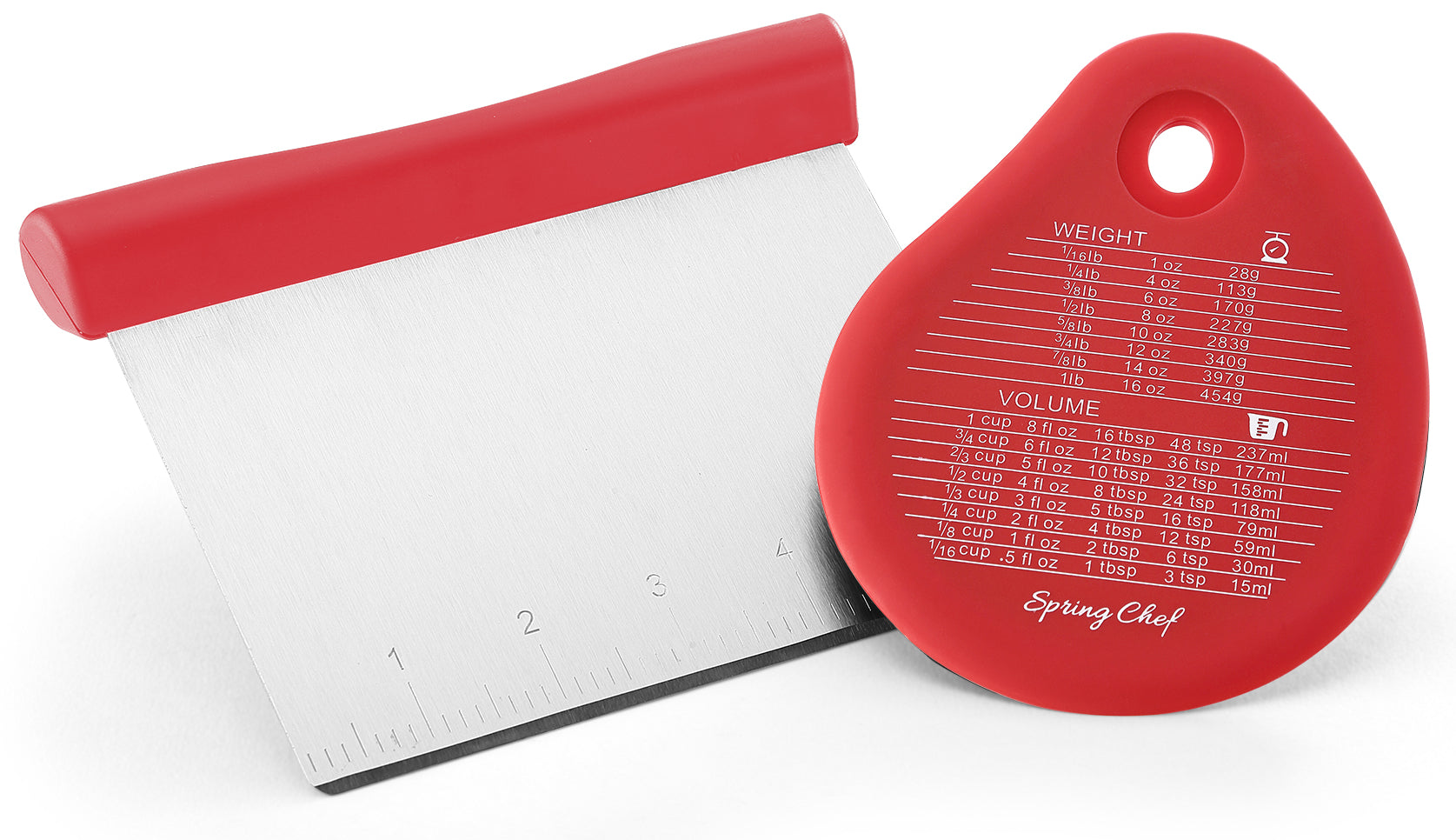 BONUS BOWL SCRAPER: Get every last bit of dough or batter from your bowl with the handy included bowl scraper. Also has a convenient measurement conversion chart printed on the surface for quick reference any time. Scrape flat surfaces with the dough scraper and scrape curved surfaces with the bonus bowl scraper. This dynamic duo will soon become an essential part of your kitchen.