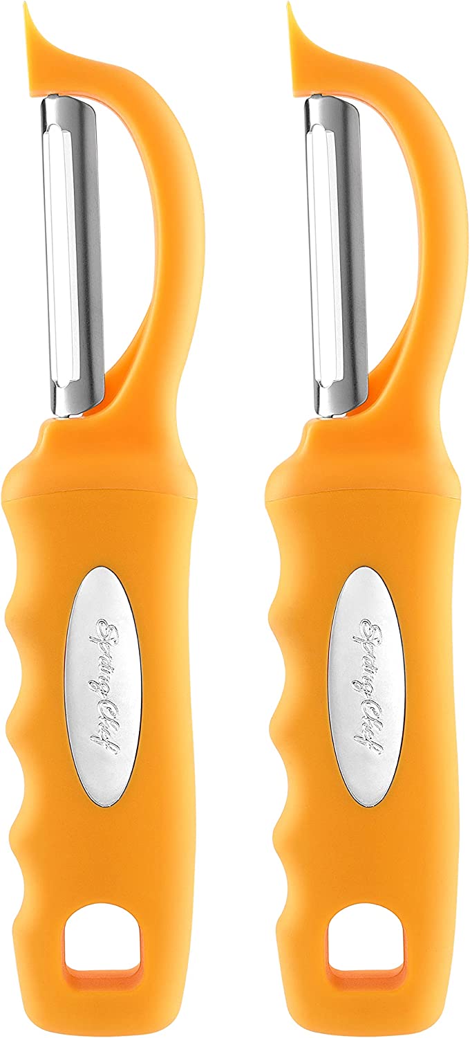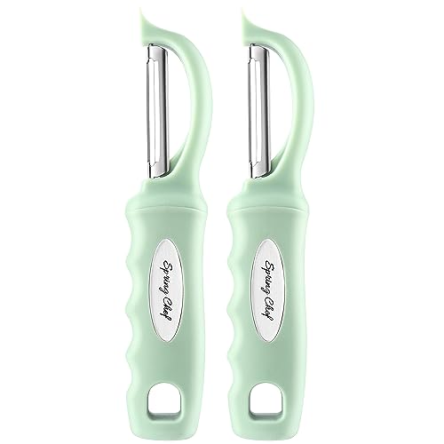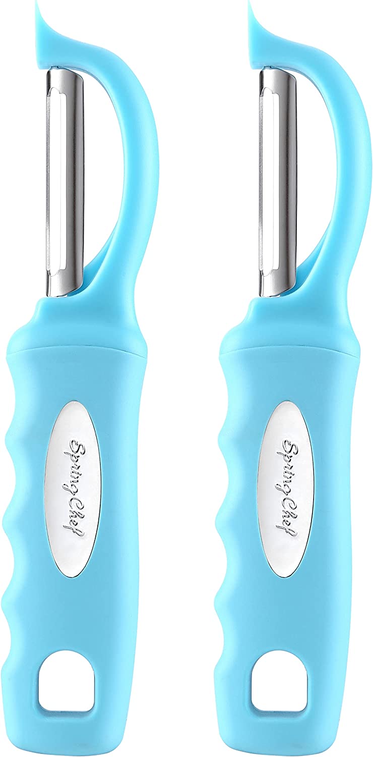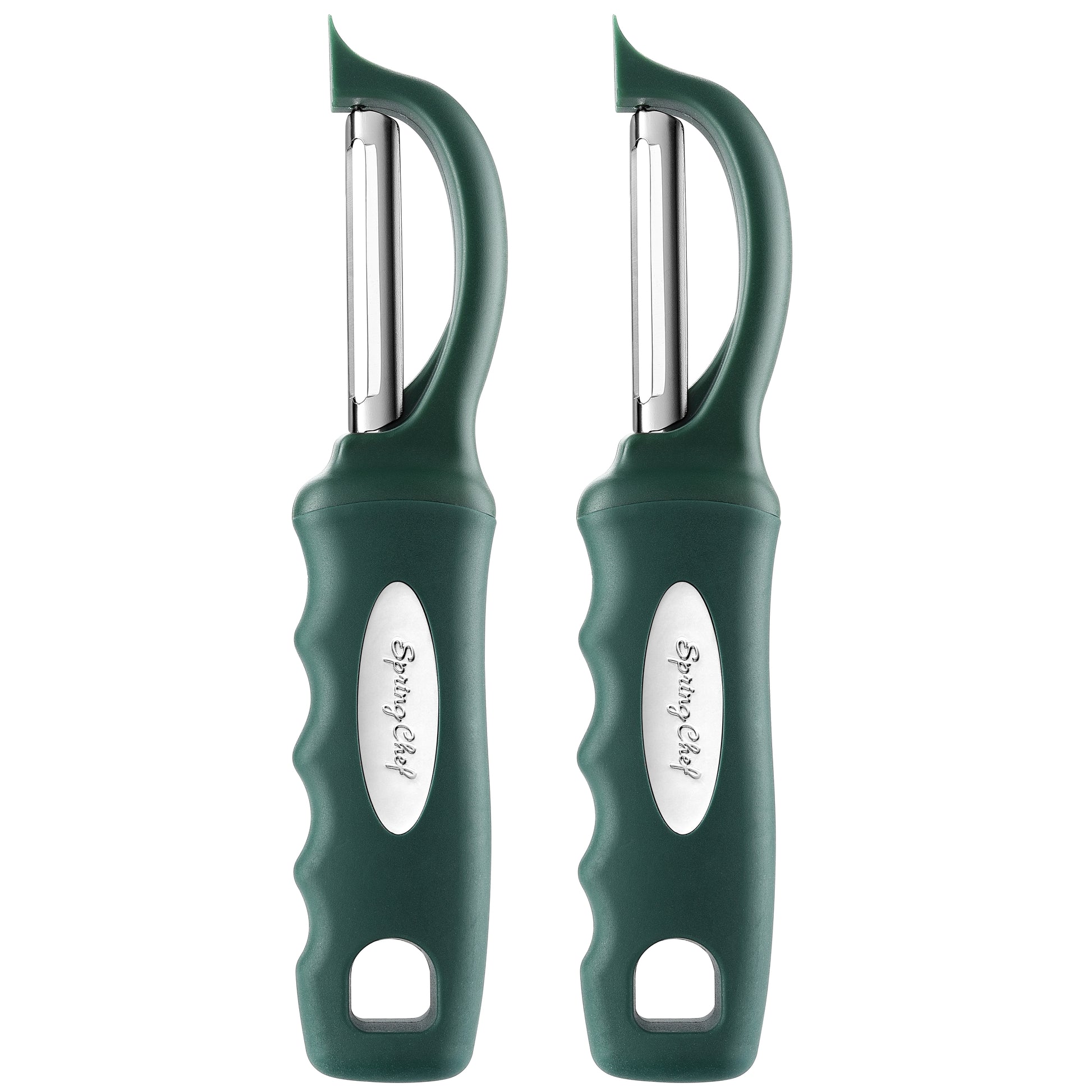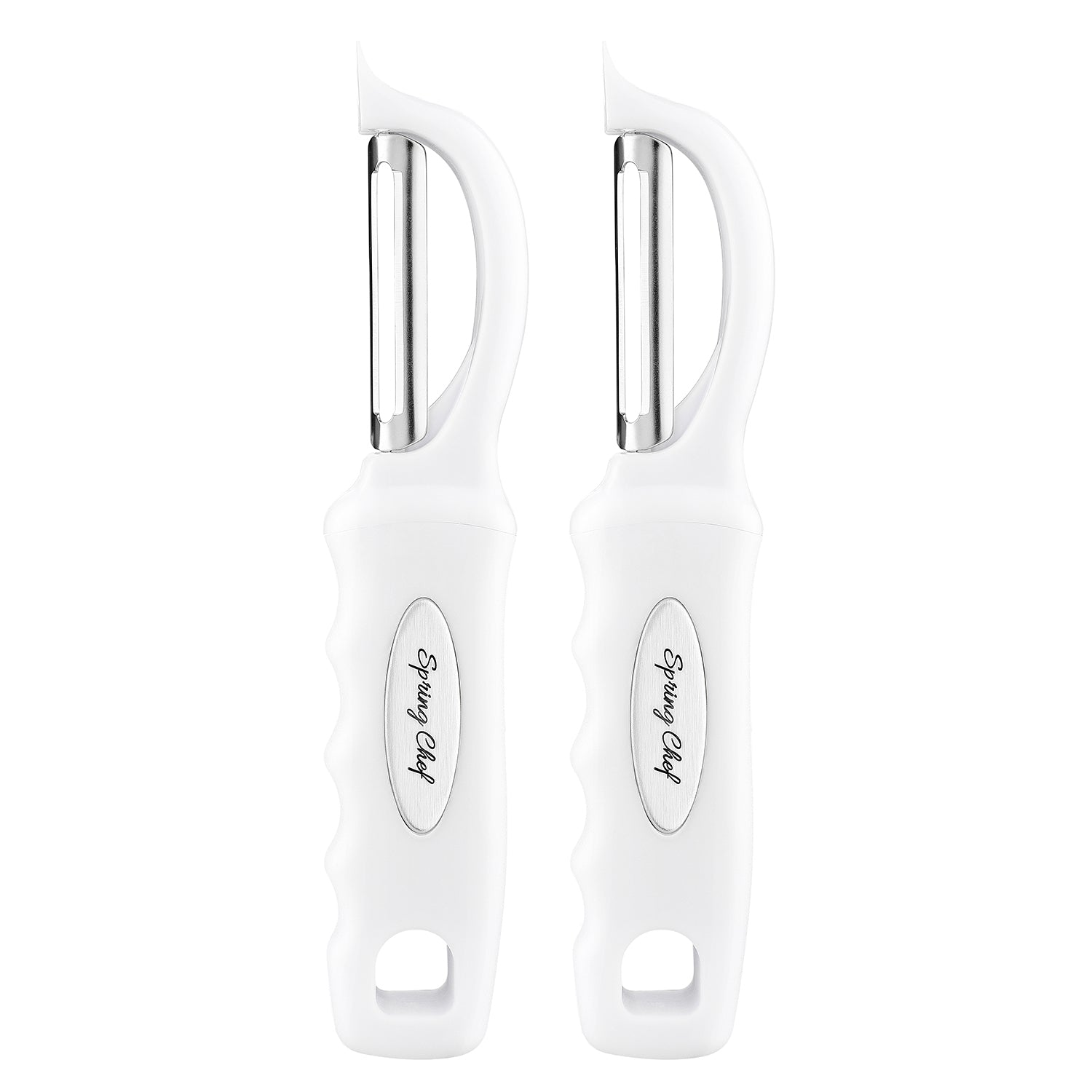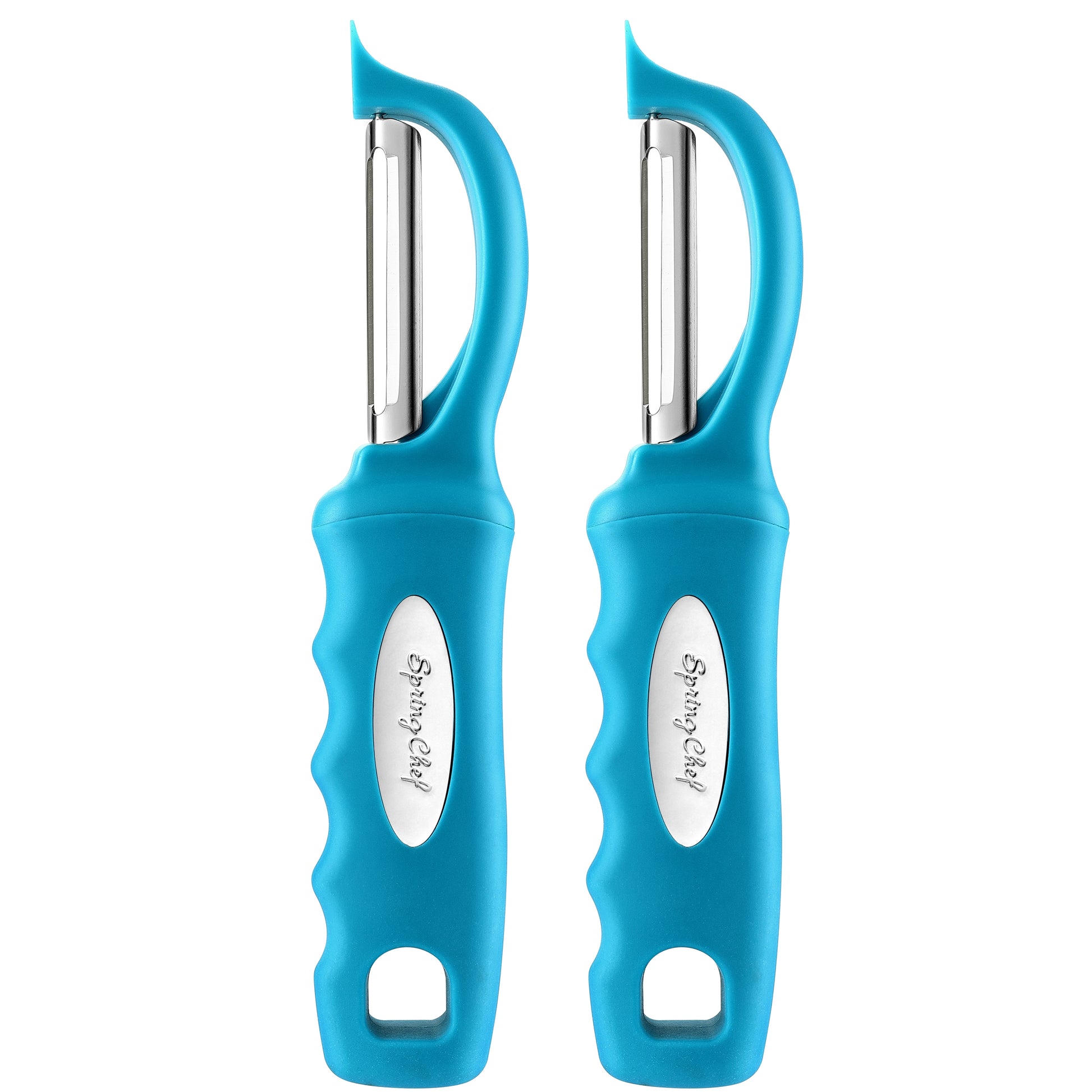 Spring Chef Premium Swivel Vegetable Peeler, Soft Grip Handle and Ultra Sharp Stainless Steel Blades - Perfect Kitchen Peeler For Veggie, Fruit, Potato, Carrot, Apple - Set of 2 with Blade Covers