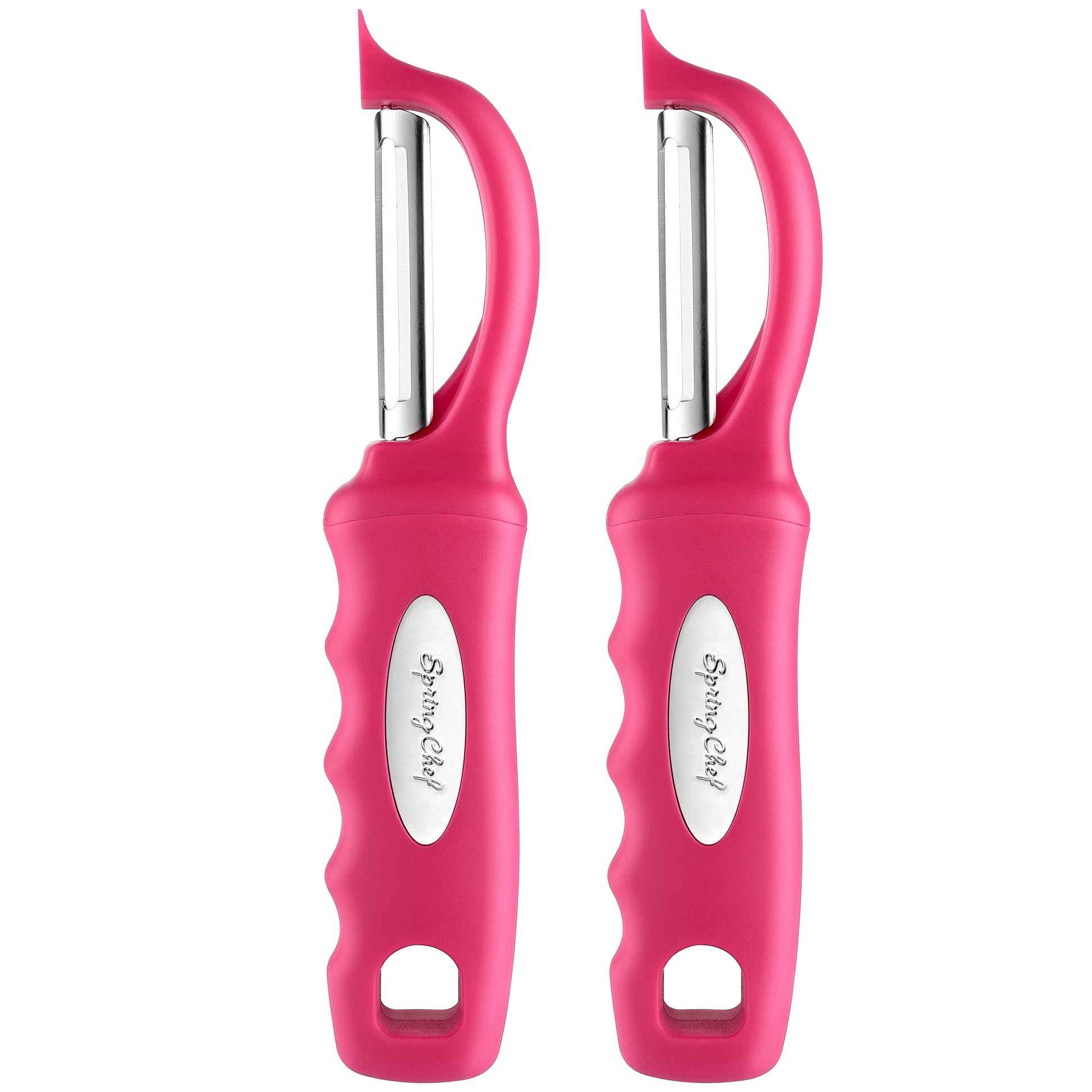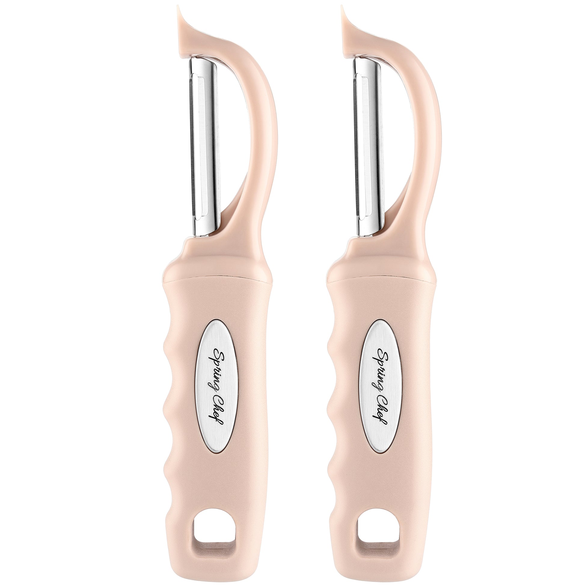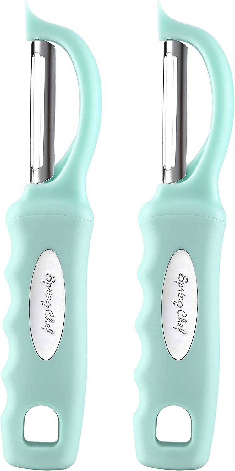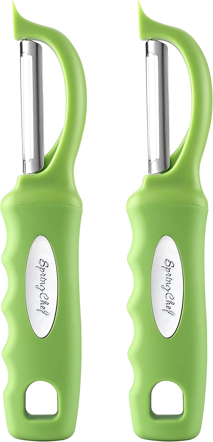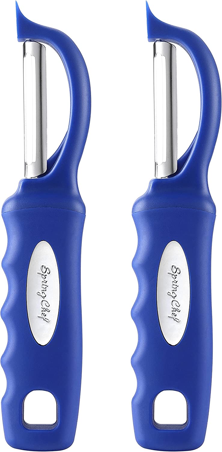 Spring Chef Premium Swivel Vegetable Peeler, Soft Grip Handle and Ultra Sharp Stainless Steel Blades - Perfect Kitchen Peeler For Veggie, Fruit, Potato, Carrot, Apple - Set of 2 with Blade Covers